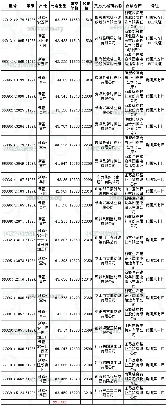 兵團(tuán)第七師成交513.898噸,占當(dāng)日該師上市資源量的9.58%。