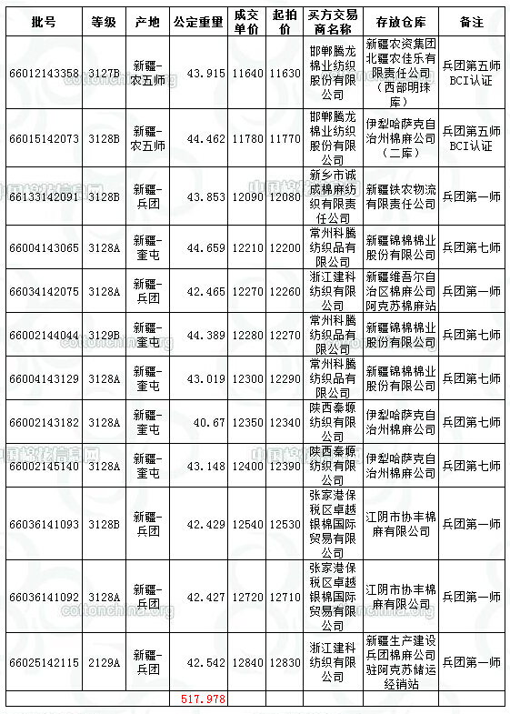 兵團(tuán)第七師成交215.885噸,占當(dāng)日該師上市資源量的4.99%。