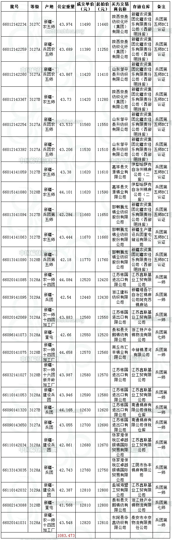 8月17日兵團(tuán)棉競賣交易成交結(jié)果