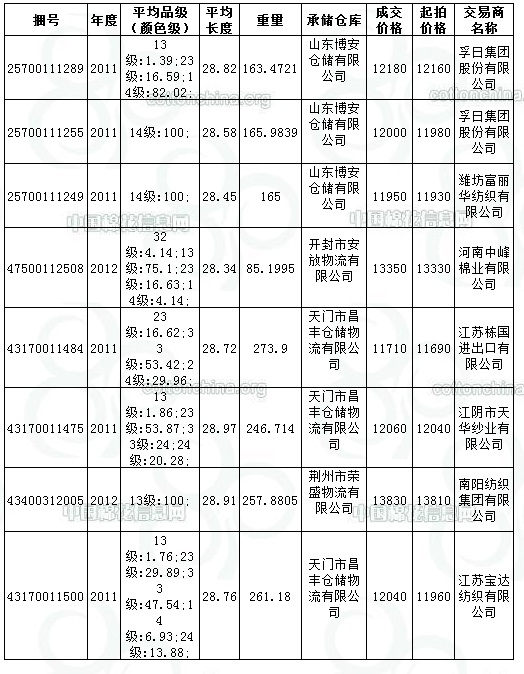 8月20日儲(chǔ)備輪出成交1619.33噸,其中2011年度國(guó)產(chǎn)棉成交1276.25噸。2012年度國(guó)產(chǎn)棉成交343.08噸。