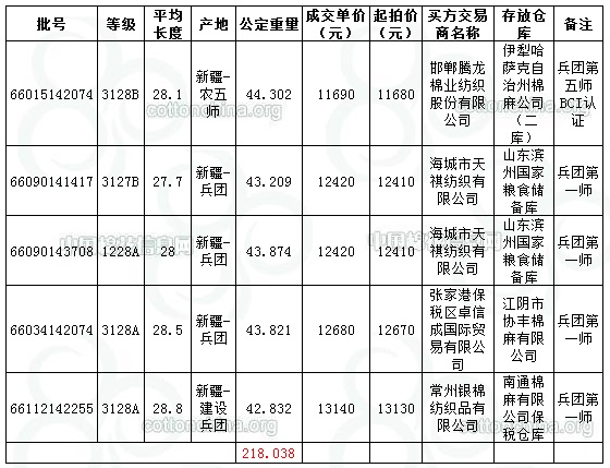 兵團第五師成交44.302噸,占當日該師上市資源量的1.19%。