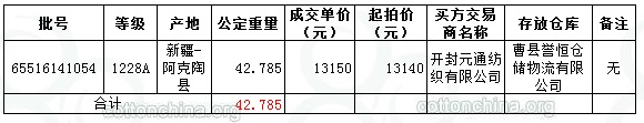 當(dāng)日成交資源1批。曹縣譽恒倉儲物流有限公司(手采棉);底價加價10元成交。
