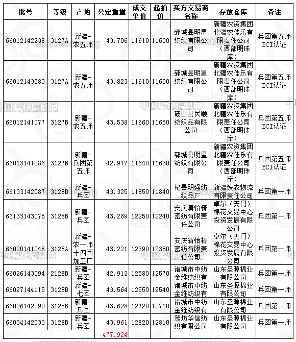 兵團(tuán)第一師成交303.88噸,占當(dāng)日該師上市資源量的1.89%。