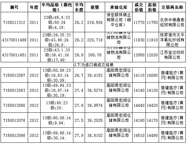 8月4日儲(chǔ)備輪出成交893.8927噸(11年度國(guó)產(chǎn)棉697.98噸;12年度進(jìn)口棉195.9127噸)。