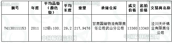 8月7日儲(chǔ)備輪出成交217.9476噸(11年度國產(chǎn)棉)。
