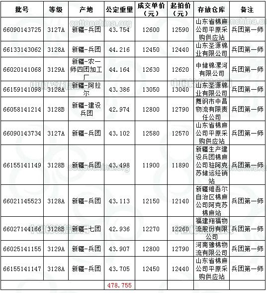 今日全部為兵團第一師成交478.755噸,占當(dāng)日該師上市資源量的2.51%。