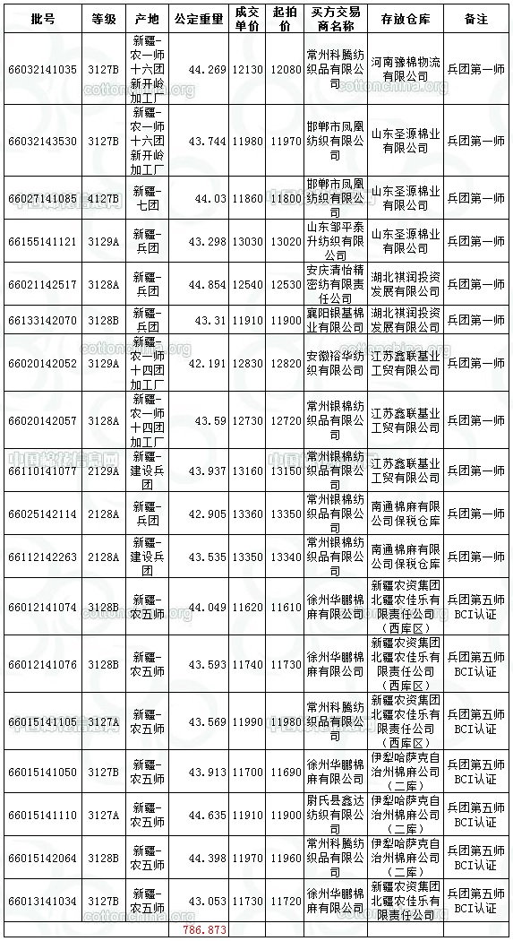9月7日兵團(tuán)棉競賣交易成交結(jié)果