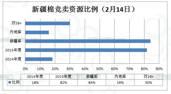 全國棉花交易市場定于2月14日上市新疆棉競賣資源4074.98噸,最低起拍價10040元/噸。其中特價棉14批(不接受復檢)。新疆庫資源占3427.785噸,內地庫資源占647.195噸。其中雙28+資源占1218.368噸。