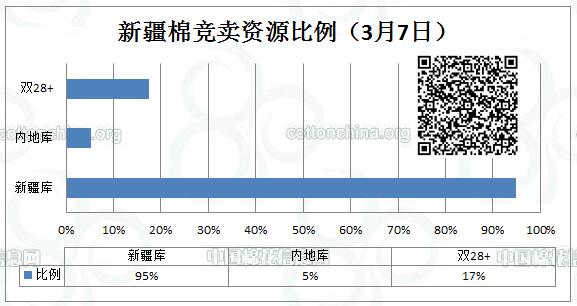 全國棉花交易市場定于3月7日上市新疆棉競賣資源2506.318噸,最低起拍價11500元/噸。新疆庫資源占2375.048噸,內(nèi)地庫資源占131.27噸。其中雙28+資源占438.46噸。