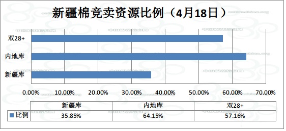 全國棉花交易市場定于4月18日上市新疆棉競賣資源1834.945噸,最低起拍價12350元/噸(與昨日持平),其中,新疆庫資源占657.787噸,內(nèi)地庫資源占1177.158噸,雙28+資源為1048.81噸。