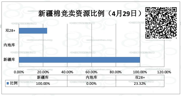 全國(guó)棉花交易市場(chǎng)定于4月29日上市新疆棉競(jìng)賣資源569.517噸,起拍價(jià)為12800元/噸,全部為新疆庫(kù)資源,雙28+資源占132.814噸。