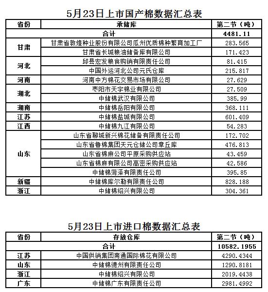 5月23日第二節(jié)交易國產(chǎn)棉明細(xì)數(shù)據(jù)