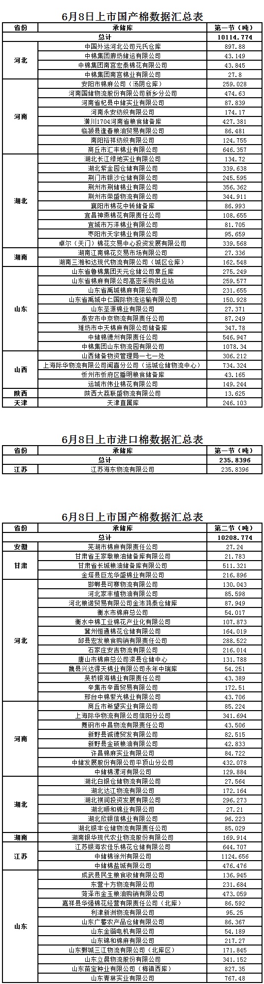 6月8日第一節(jié)交易國產(chǎn)棉明細(xì)數(shù)據(jù)