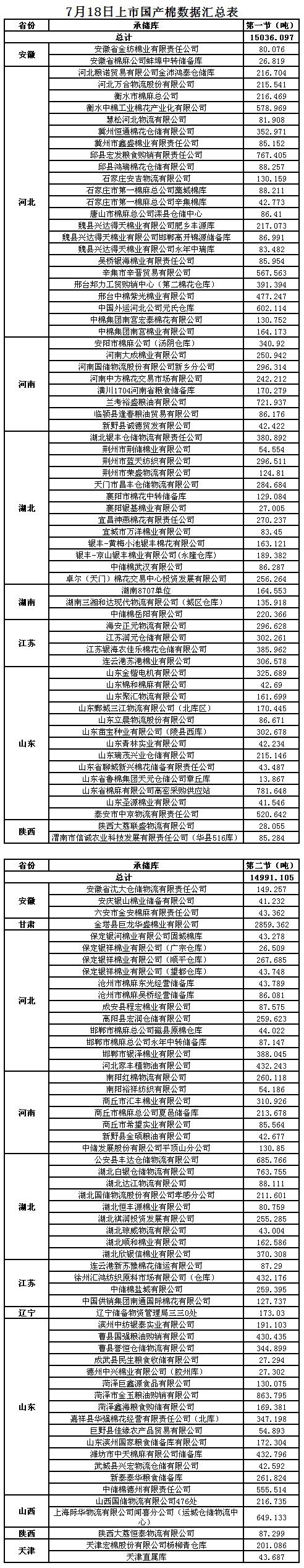 7月18日第二節(jié)交易國產(chǎn)棉明細(xì)數(shù)據(jù)