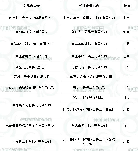 2012年度棉花臨時(shí)收儲(chǔ)已審核企業(yè)