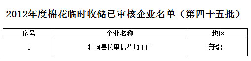 2012年度棉花臨時收儲已審核企業(yè)名單(第四十五批)
