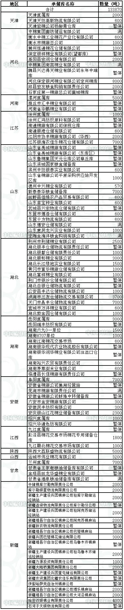 錦橋紡織網(wǎng)—資訊頻道> 棉花信息> 收儲>正文 11月13日收儲預(yù)告:計劃收儲133870噸