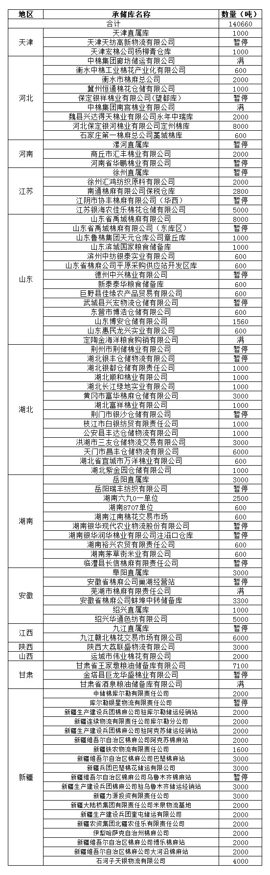 錦橋紡織網(wǎng)—資訊頻道> 棉花信息> 收儲>正文 11月2日收儲預(yù)告:計劃收儲140660噸