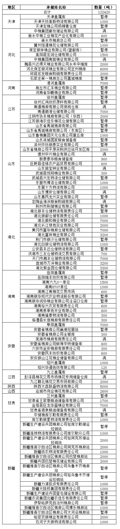 錦橋紡織網(wǎng)—資訊頻道> 棉花信息> 收儲>正文 11月22日收儲預告:計劃收儲122420噸