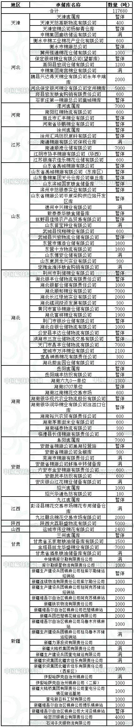 錦橋紡織網(wǎng)—資訊頻道> 棉花信息> 收儲>正文 11月27日收儲預告:計劃收儲117680噸