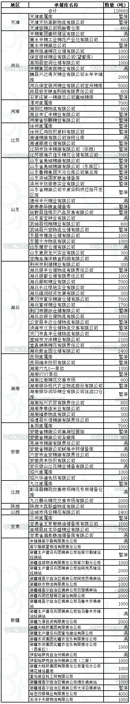 錦橋紡織網(wǎng)—資訊頻道> 棉花信息> 收儲>正文 11月28日收儲預告:計劃收儲116680噸