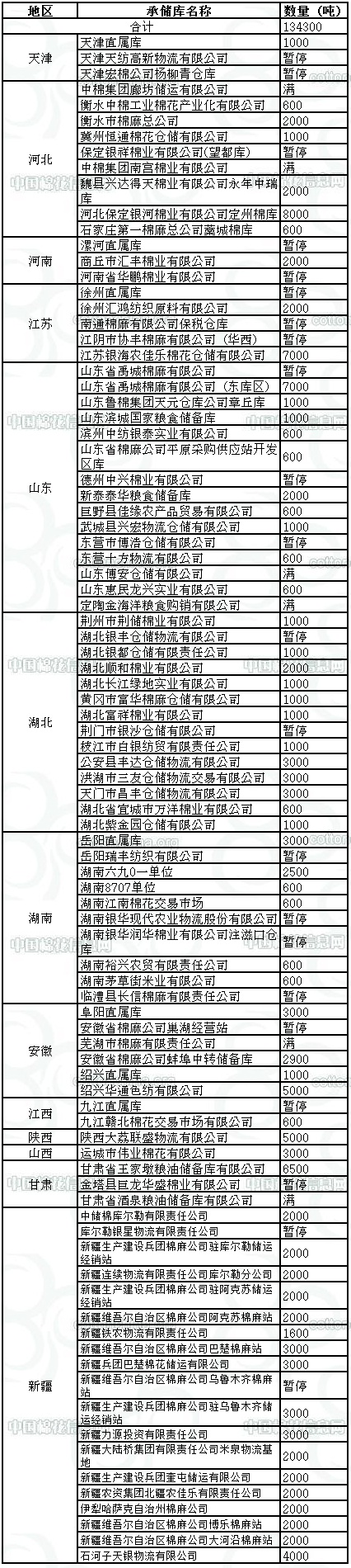 錦橋紡織網(wǎng)—資訊頻道> 棉花信息> 收儲>正文 11月5日收儲預(yù)告:計劃收儲134300噸