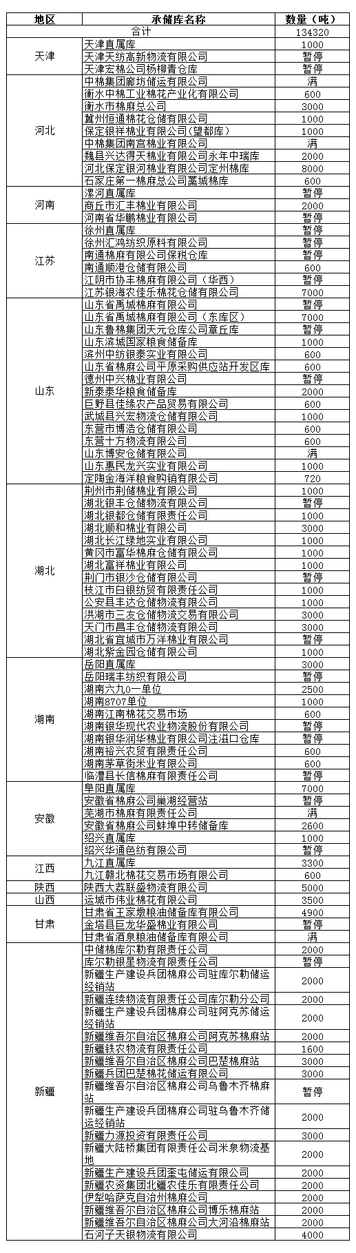 錦橋紡織網(wǎng)—資訊頻道> 棉花信息> 收儲>正文 11月6日收儲預(yù)告:計劃收儲134320噸