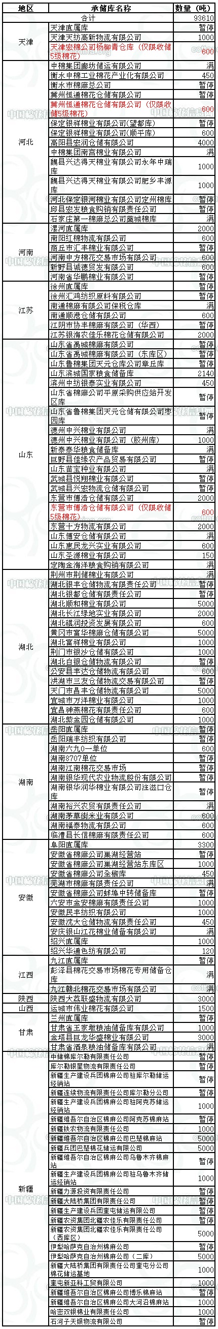 錦橋紡織網(wǎng)—資訊頻道> 棉花信息> 收儲>正文 12月18日收儲預(yù)告:計(jì)劃收儲93610噸
