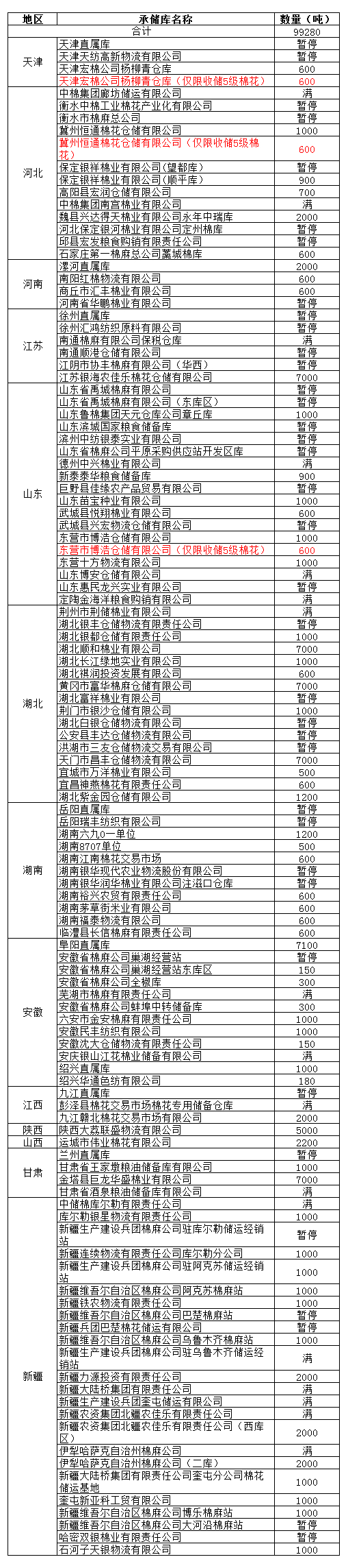 定于12月6日在以下指定倉庫收儲2012年度棉花99280噸。哈密雙銀棉業(yè)有限責任公司僅限東疆棉花企業(yè)競拍,新疆維吾爾自治區(qū)棉麻公司博樂棉麻站僅限于博樂地區(qū)棉花企業(yè)競拍,以上庫點其他地區(qū)企業(yè)競拍將按違約處理。
