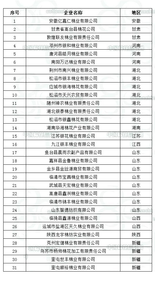 2012年度棉花臨時(shí)收儲已審核企業(yè)名單(第二批)