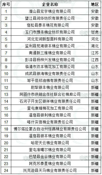 2012年度棉花臨時收儲已審核企業(yè)名單(第十批)
