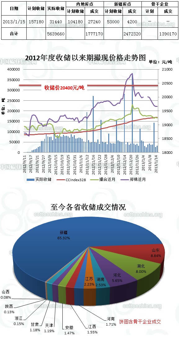 1月15日,計劃收儲157180噸,實(shí)際成交31440噸,成交比例20.0%,較前一天增加5570噸。其中新疆庫點(diǎn)計劃收儲53000噸,實(shí)際成交4200噸,成交比例7.9%;內(nèi)地庫計劃收儲104180噸,實(shí)際成交27240噸,成交比例26.1%。