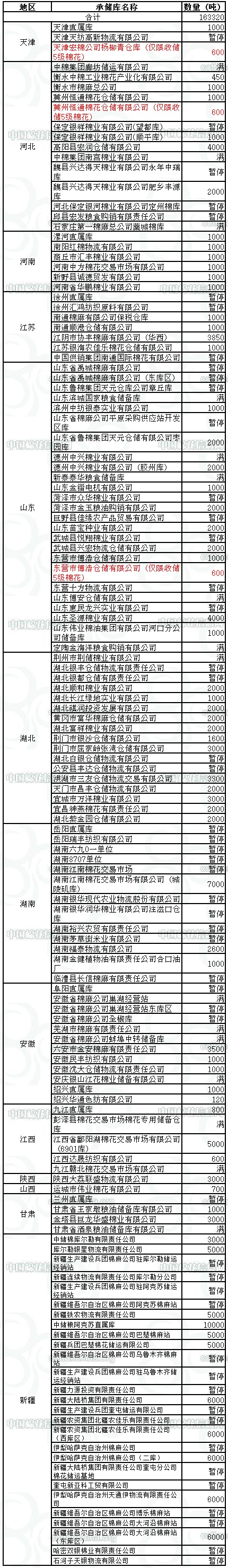 定于元月31日在以下指定倉庫收儲2012年度棉花161120噸。哈密雙銀棉業(yè)有限責任公司僅限東疆棉花企業(yè)競拍,新疆維吾爾自治區(qū)棉麻公司博樂棉麻站僅限于博樂地區(qū)棉花企業(yè)競拍,以上庫點其他地區(qū)企業(yè)競拍將按違約處理。