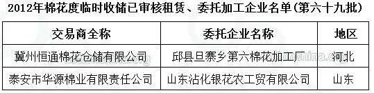 2012年度棉花臨時收儲已審核租賃、委托加工企業(yè)名單(第六十九批)