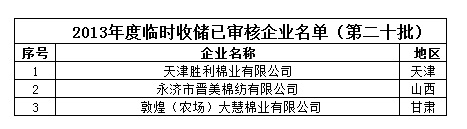 2013年度棉花臨時(shí)收儲已審核企業(yè)名單(第二十批)