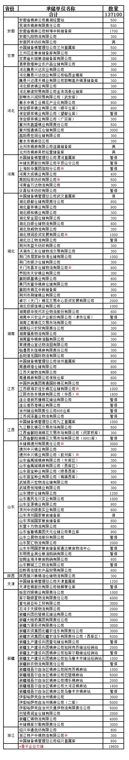 錦橋紡織網(wǎng)—資訊頻道> 棉花信息> 收儲>正文 11月12日收儲預告:計劃收儲137100噸