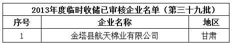 2013年度棉花臨時收儲已審核企業(yè)名單(第三十九批)