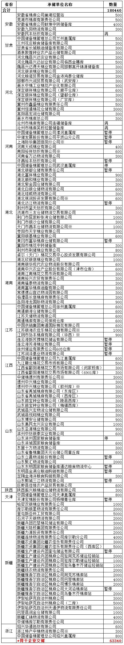 錦橋紡織網(wǎng)—資訊頻道> 棉花信息> 收儲>正文 11月7日收儲預(yù)告:計劃收儲180440噸