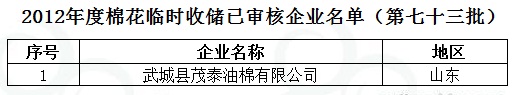 2012年度棉花臨時(shí)收儲(chǔ)已審核企業(yè)名單(第七十三批)
