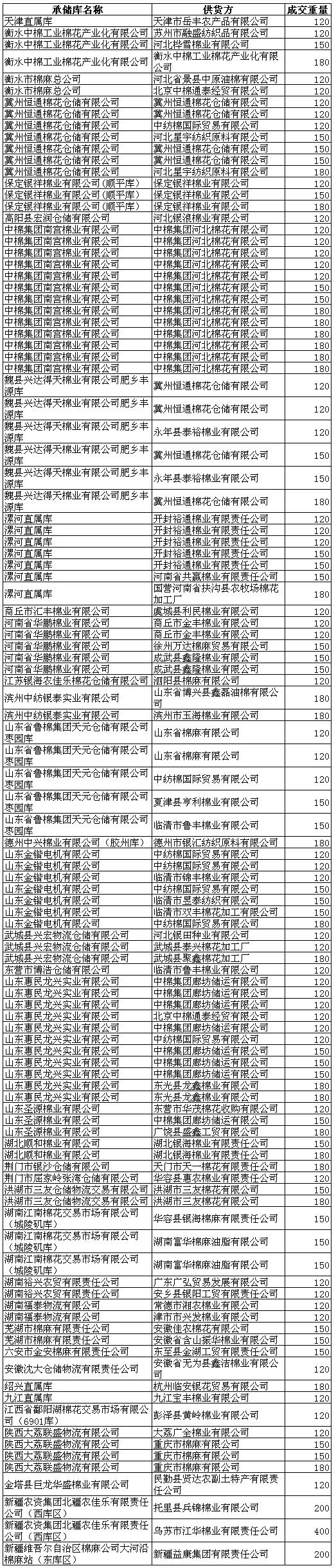 錦橋紡織網(wǎng)—資訊頻道> 棉花信息> 收儲(chǔ)>正文 3月13日收儲(chǔ)成交結(jié)果