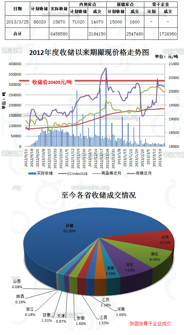3月25日,計劃收儲86020噸,實際成交15670噸,成交比例18.2%,較前一天增加6530噸。其中新疆庫點計劃收儲15000噸,實際成交1600噸,成交比例10.7%;內(nèi)地庫計劃收儲71020噸,實際成交14070噸,成交比例19.8%。