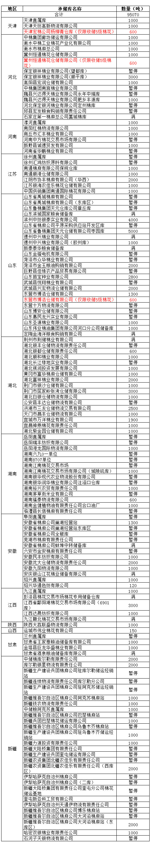 定于3月28日在以下指定倉庫收儲2012年度棉花95070噸。哈密雙銀棉業(yè)有限責任公司僅限東疆棉花企業(yè)競拍,新疆維吾爾自治區(qū)棉麻公司博樂棉麻站僅限于博樂地區(qū)棉花企業(yè)競拍,以上庫點其他地區(qū)企業(yè)競拍將按違約處理。