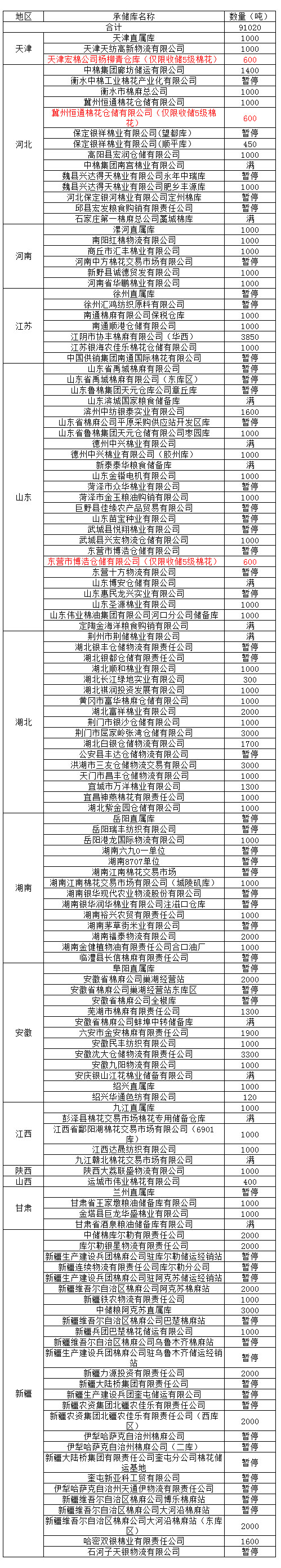 定于3月8日在以下指定倉庫收儲2012年度棉花91020噸。哈密雙銀棉業(yè)有限責任公司僅限東疆棉花企業(yè)競拍,新疆維吾爾自治區(qū)棉麻公司博樂棉麻站僅限于博樂地區(qū)棉花企業(yè)競拍,以上庫點其他地區(qū)企業(yè)競拍將按違約處理。