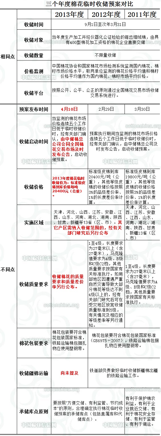 2013年度收儲預(yù)案與前兩個年度收儲預(yù)案對比