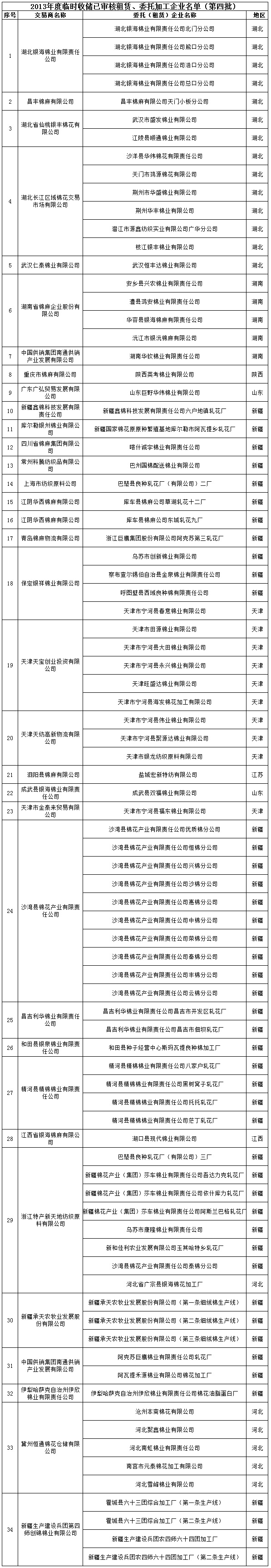 2013年度棉花臨時(shí)收儲(chǔ)已審核租賃、委托加工企業(yè)名單(第四批)