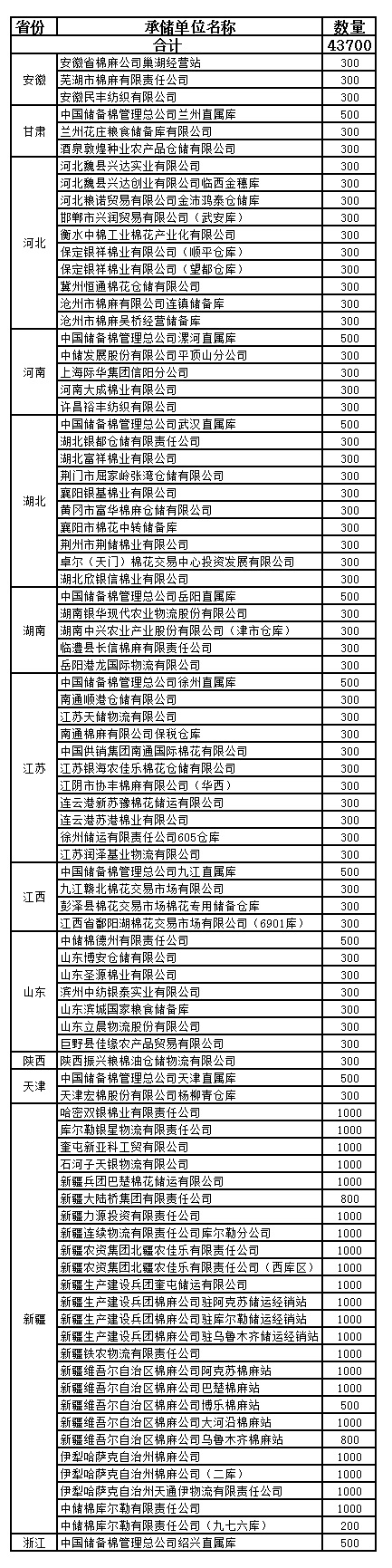 2013年度棉花臨時收儲已審核企業(yè)