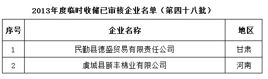 2013年度棉花臨時收儲已審核企業(yè)名單(第四十八批)