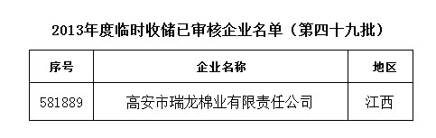 2013年度棉花臨時(shí)收儲(chǔ)已審核企業(yè)名單(第四十九批)
