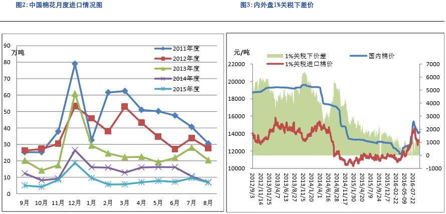 9月底儲備棉輪出結束,但是大量的新疆新花上市預計要等到10月中旬左右,新花上市前國內的棉花供應主要依靠儲備棉,因此預計9月底儲備棉競拍將非常激烈。
