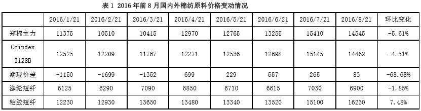 8月份,隨著儲(chǔ)備棉輪出期的延長,國內(nèi)棉花價(jià)格大跌,另外國際市場的棉花價(jià)格也逐漸趨冷,國內(nèi)外棉紗的價(jià)格也跟隨下跌。目前國產(chǎn)C32S普配價(jià)格在22000元/噸左右,而進(jìn)口棉紗價(jià)格在21500元/噸附近,但是近期跌勢(shì)仍不止。預(yù)計(jì)后期隨著紡織市場的“金九銀十”到來,棉紗的銷售情況或?qū)⒑棉D(zhuǎn)。